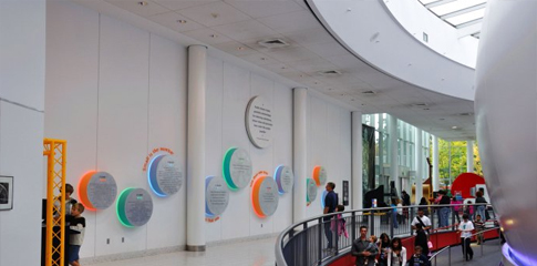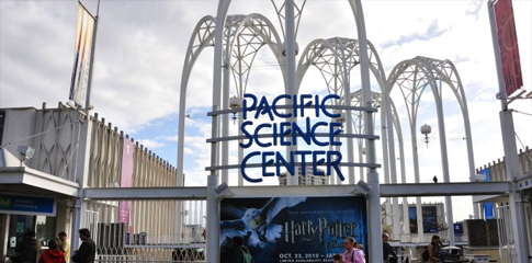 "美国西雅图太平洋科学中心坐落在西雅图市的西部,虽然规模不很大,但却有许多精彩之处。 (1)独特的广场设计 独特、巧妙的设计使观景与科技展品结合得自然、紧密。广场上设计了一组与水有关的、参与性极强的科技展品,造型美观、色彩协调,每一个展品都犹如一个景点,每个展品都集科学性、知识性、娱乐性、艺术性于一身,显示了科学与艺术的巧妙结合。