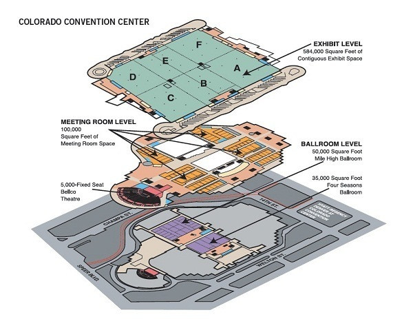 科罗拉多会议中心位于美国丹佛市内,它拥有50000平方米的展览面积,可设4000来个国际标准摊位。科罗拉多会议中心是一个多功能会议中心,位于科罗拉多州丹佛市中心。它占地2,200,000平方英尺,是目前美国第12大会议中心。它于1990年6月开业;第一项赛事是丹佛掘金队的NBA选秀。会议中心于2004年扩建,包括几个会议室,两个宴会厅和一个室内圆形剧场。自开放以来,该中心每年平均举办约400场活动。