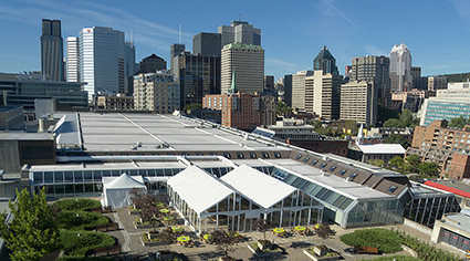 蒙特利尔会展中心拥有总面积200000平方英尺(19000平方米)的展览面积,其中包括65个会议室和18个装卸码头。它位于仅20公里蒙特利尔特鲁多国际机场附近。