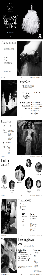 2026年意大利米兰婚纱礼服展览会(Sì Sposaitalia Collezioni ),展会时间:2026年02月21日~02月23日,展会地点:意大利-米兰-Strada Statale Sempione, 28, 20017 Rho MI, 意大利-米兰新国际会展馆,主办方:Fiera Milano,举办周期:一年一届,展会面积:30000平米,参展观众:12000人,参展商数量及参展品牌达到260家。意大利米兰婚纱周(Sì Sposatalia Collezioni)是专业婚纱行业贸易展,现场将会呈现的是最全面而丰富的婚纱礼服及婚礼配饰产品,款式多样。