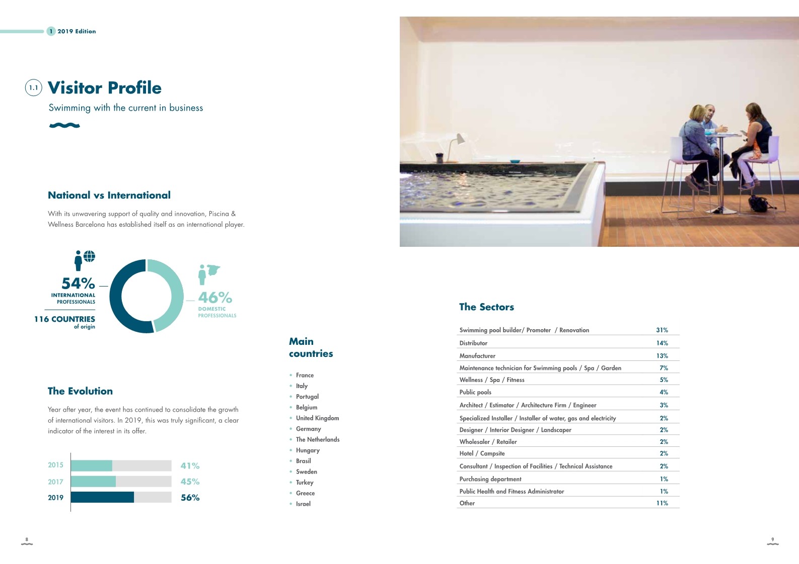 此外,Piscina Barcelona还提供了各种专业服务和支持,包括泳池、桑拿、水疗和健身设备的咨询、设计、实施和维护等方面的咨询和帮助,帮助参展商和观众更好地了解泳池、健身和水疗行业和市场,提高业务水平和竞争力。
